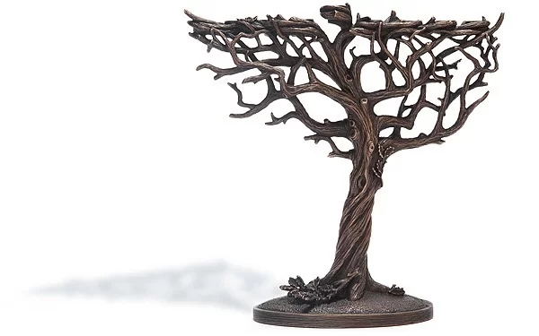 Our cast bronze Abraham’s Tree Menorah, crafted by Rebecca Nightingale, symbolizes the special site where Abraham was visited by three angels.